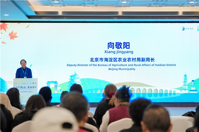 精彩的开场演出后,北京市海淀区农业农村局党组成员、副局长向敬阳致欢迎词。致辞描绘了一幅生动的“文旅赋能”实践地图:科技的“火种” 正点亮赤城康养旅居的未来;市场的“钥匙”正唤醒敖汉特色物产的文化价值;圆明园的“数字基因”正植入潞州景区现代化的发展脉动;“饮水思源”的“情感纽带”正擦亮丹江口最珍贵的生态品牌;精准的品牌营销则为科尔沁草原架起了直通首都的广阔桥梁。这一系列生动实践,彰显了海淀文旅从“送客源、教方法”到“塑品牌、育生态”,以文化赋能乡村振兴的坚定决心与卓越成效。